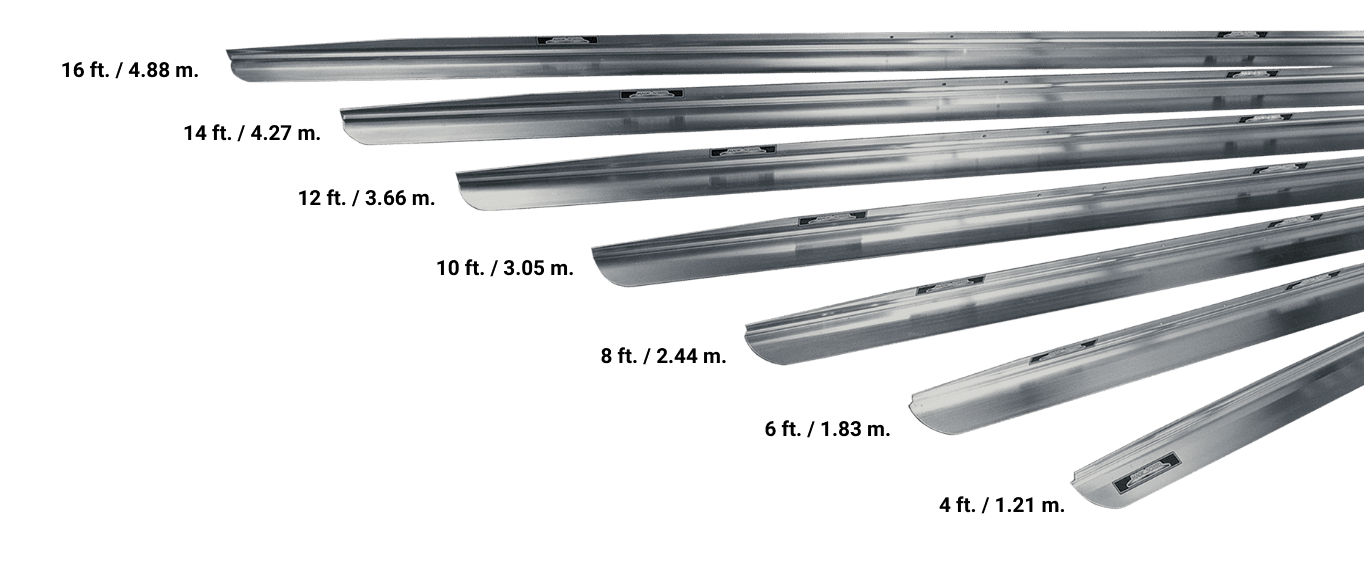 Our patented aluminum blades are known for their unmatched straightness, ensuring precise, flawless concrete leveling. Available in seven sizes from 4 to 16 feet, Magic Screed blades are versatile and can adapt to any job size. Swappable in just two minutes and fully compatible with both the Magic Screed and the E-Screed, they are built to maximize efficiency and productivity.